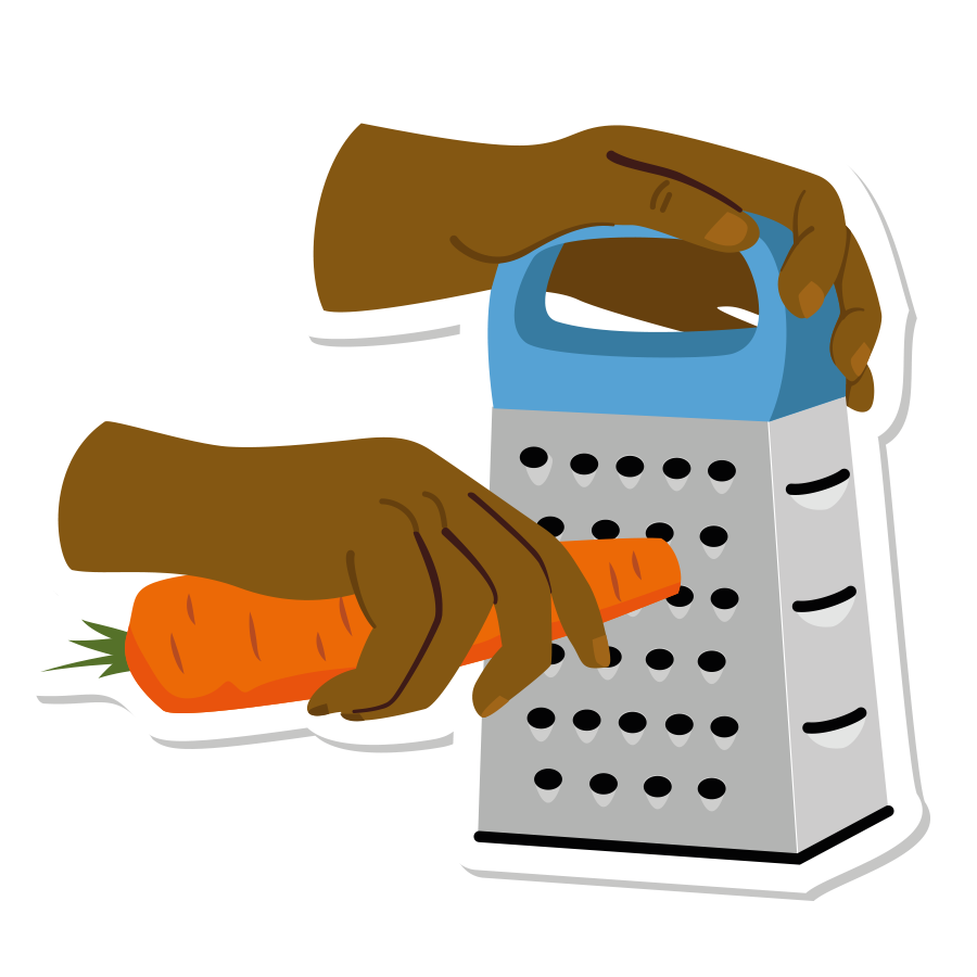 Try grating hard, sturdy veg like carrots, courgettes, or red cabbage to start.