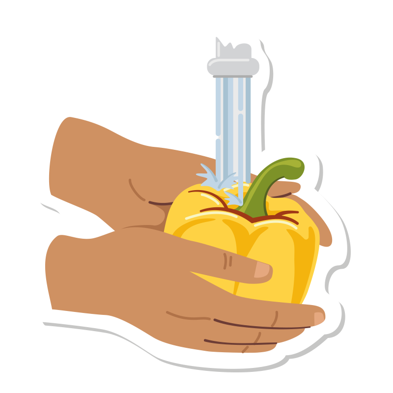 Always wash your hands before cooking. Make sure you use soap and warm water, and wash all the parts of your hands, for 20 seconds.