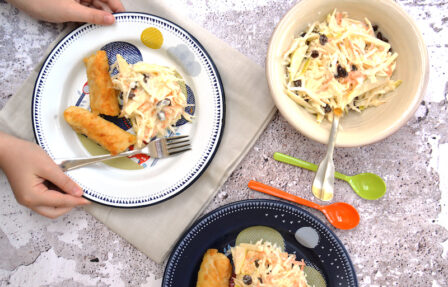 For a younger child, why not make a classic “remoulade” (celeriac slaw) by giving them a few peeled chunks of celeriac and showing them how to safely grate it, or push the buttons on a food processor with a grater attachment. Pop the grated celeriac in a bowl and let them mix in mayonnaise and a little lemon juice, and any seasoning, dried fruit or herbs you think they might want to add in. They could do it solely with celeriac, or mix in some grated carrot and apple to make it a more familiar coleslaw.