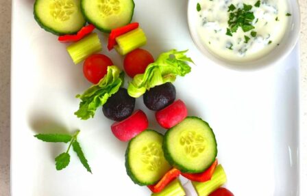 Zoe’s Summer-on-a-Stick Salad Sticks with Yogurt-Mint Dip