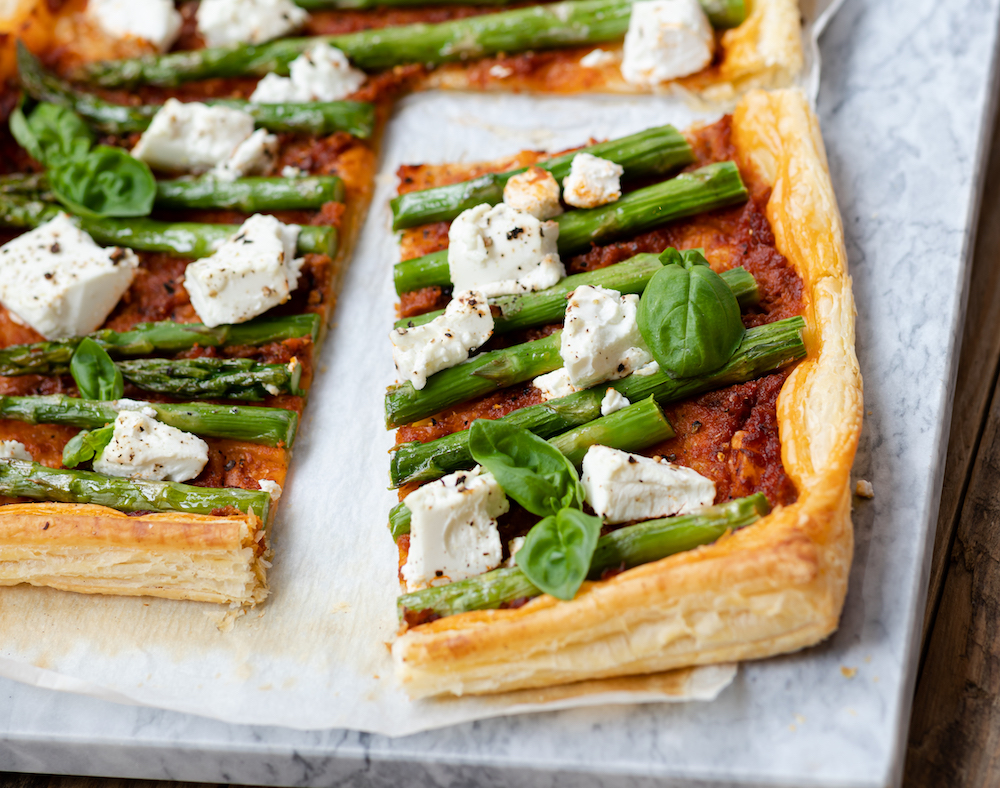 Chris’ Asparagus, Tomato & Goat’s Cheese Tart