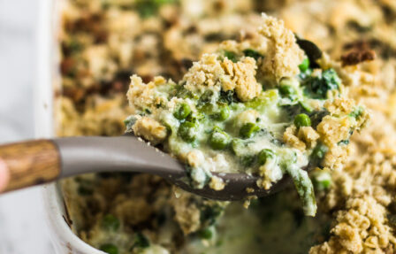TIP: Swap spinach out for any kind of exciting fresh or frozen greens, discarding any tough stalks. I also sometimes add breadcrumbs to the top for bonus crunch. Tasty!