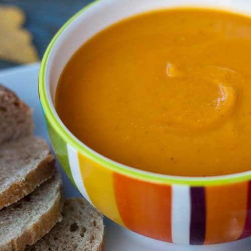 Help older kids chop the veg and stir the ingredients in the pan as they cook. Let younger ones very carefully help to blitz the soup, keeping a close eye that the hot mixture doesn’t spit (better yet, allow it to cool before blitzing). Have little ones roughly chop the coriander with scissors and scatter over the top of the soup.