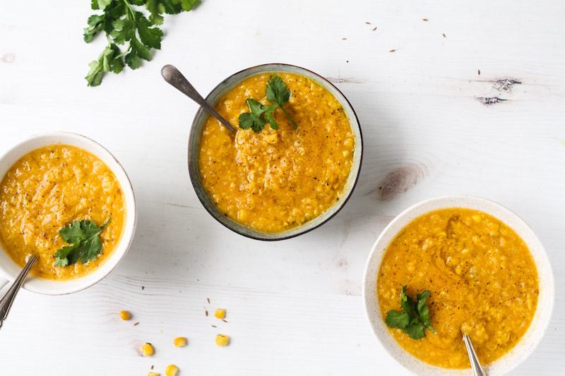 Mix it up: Try swapping in some new yellow or orange veg from time to time to see how the family get on with them. Squash works well in place of sweet potato (especially butternut squash), yellow courgette is nice in place of the peppers, finely diced carrots make a nice addition, or add 1 mug of red lentils to the softened onions and peppers and cook for a minute before adding the stock. Using different spices also changes up the flavour – try curry powder in place of cumin, or add a teaspoon of ground turmeric, coriander or paprika to the cumin to add more depth. For an even more filling, balanced meal, add a handful of cooked egg noodles to the soup .